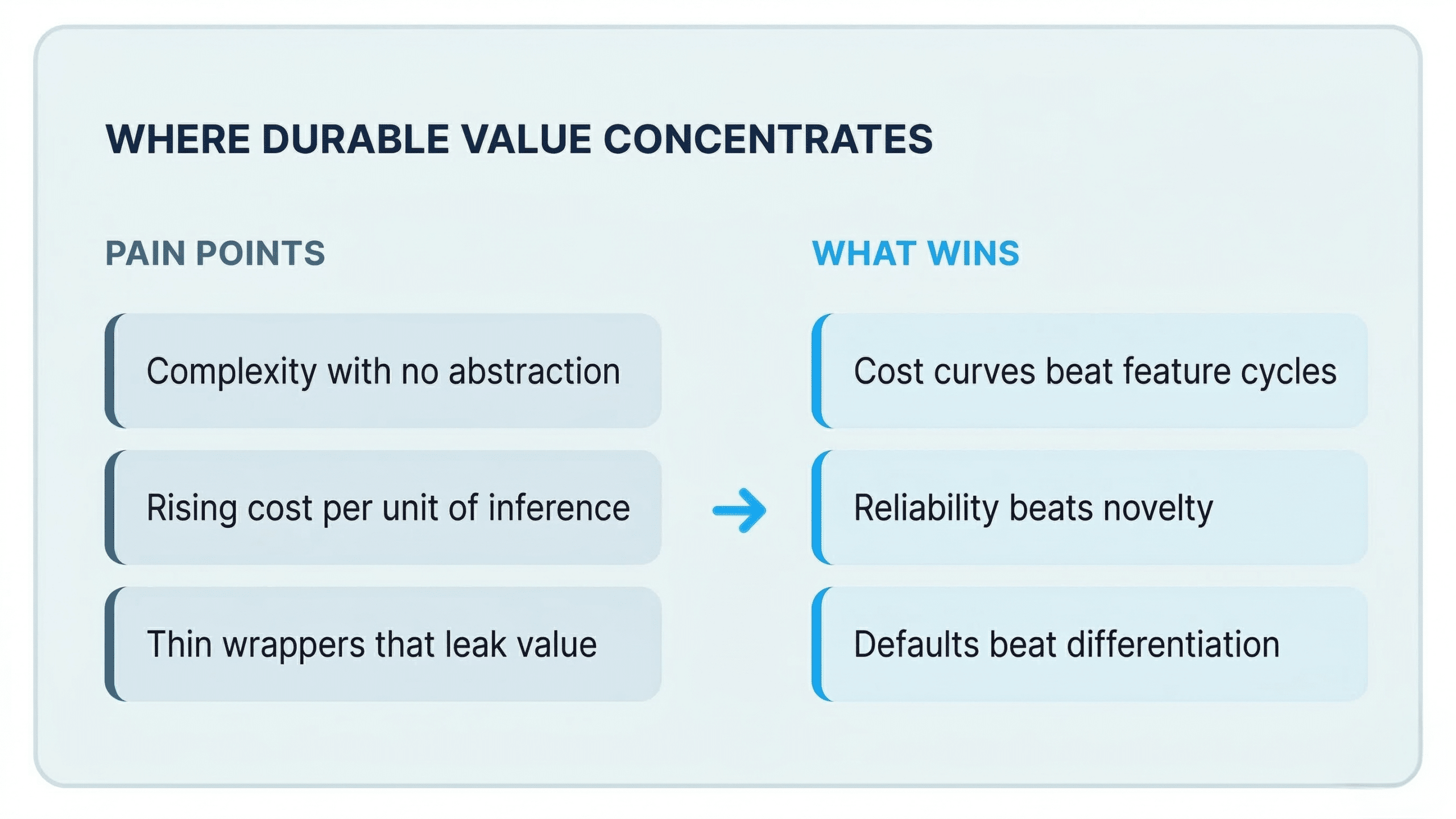 This is also why the best infrastructure companies are so hard to appreciate early. Their value is invisible in a demo. Lower inference cost, higher utilization and uptime, predictable latency under load—none of these generate applause in a pitch meeting. But they show up dramatically in the P&L once you’re operating at scale.